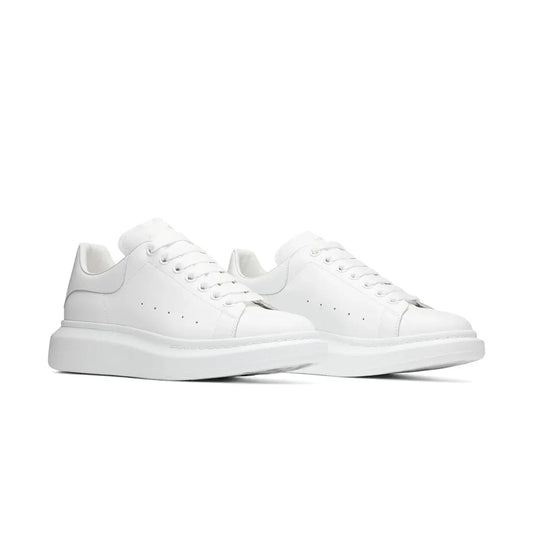 Baskets oversize blanches Alexander McQueen Baskets à lacets en cuir lisse blanc, à bout arrondi et talon rehaussé de cuir blanc Lacets plats et larges, logo Alexander McQueen sur la languette...
