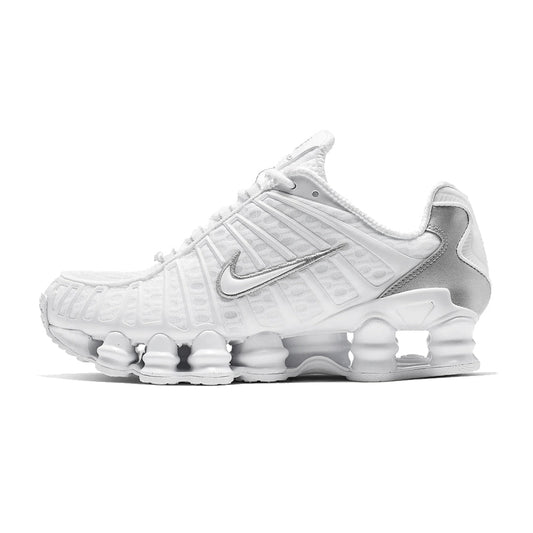 Découvrez la Nike Shox TL White Metallic Silver Max Orange, une réinterprétation raffinée des légendaires baskets de Nike. Avec son empeigne en mesh blanc et ses touches argentées élégantes, ces...