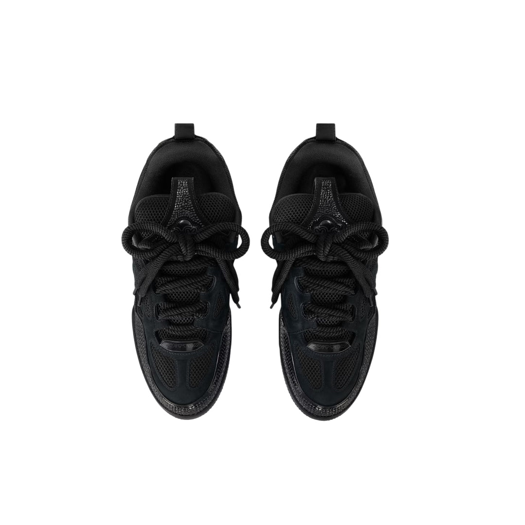 Cette interprétation exceptionnelle de la sneaker LV Skate est habillée de cristaux Swarovski™ pour créer une allure noire étincelante. Inspiré des chaussures de skate des années 90, ce modèle se distingue par son col et sa languette rembourrés et oversize. Il présente de nombreux détails emblématiques, notamment une fleur de Monogram sur le côté et la mention Vuitton since 1854 à l'arrière.